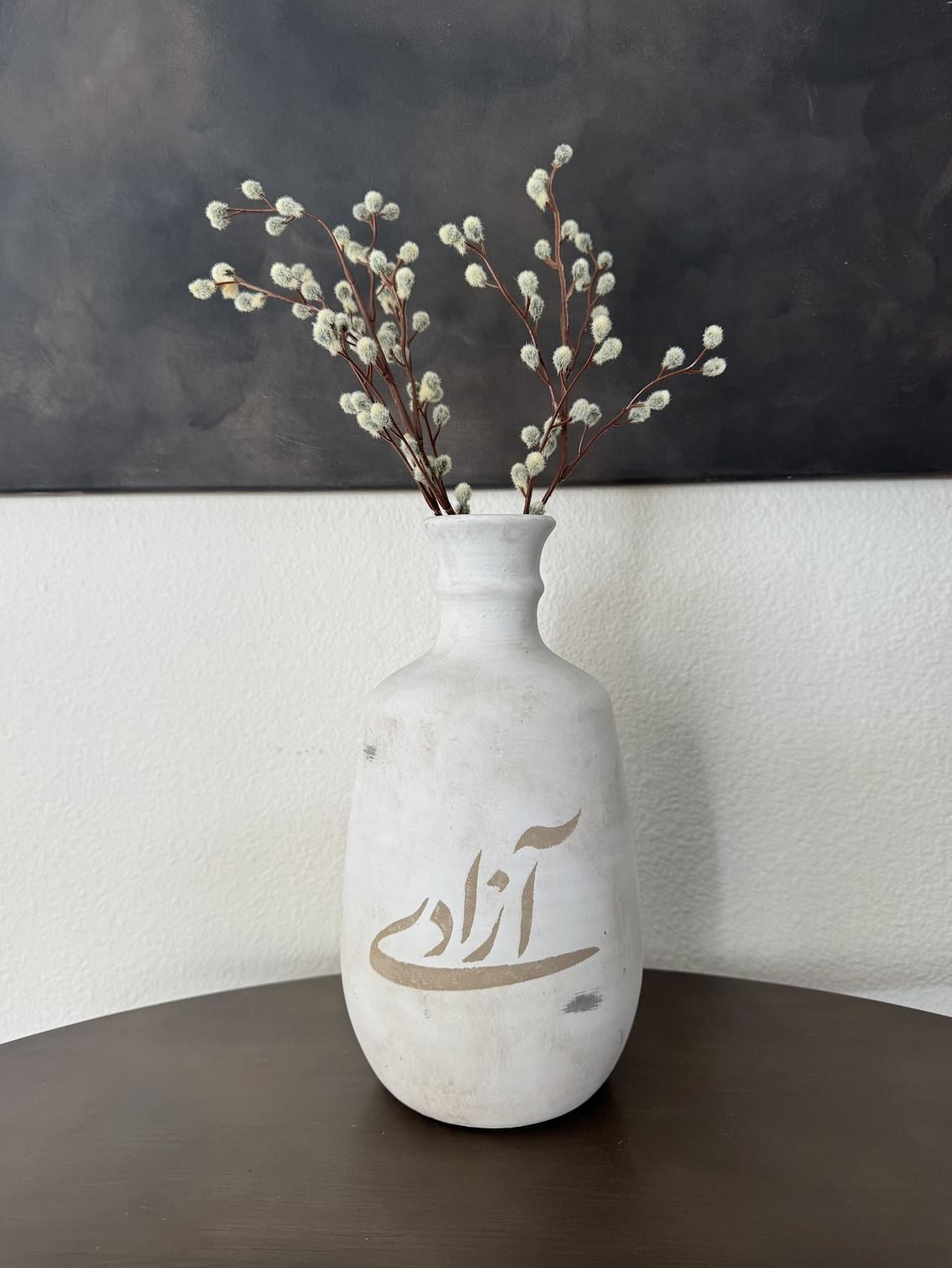 Hand-Painted Farsi Calligraphy Vase – “Azadi” by Kuzeh House